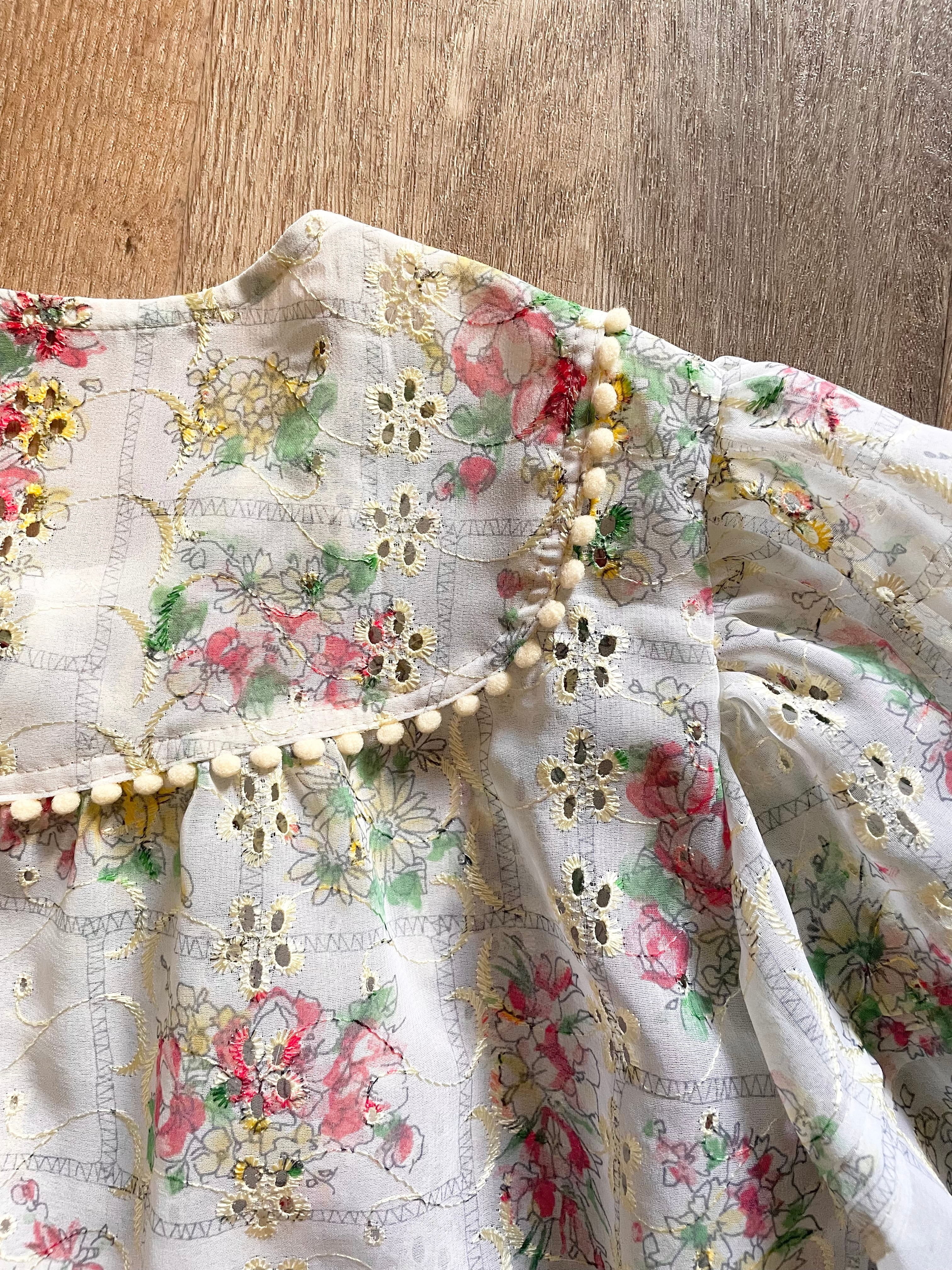 繊細なアイレットレース刺繍に描かれた