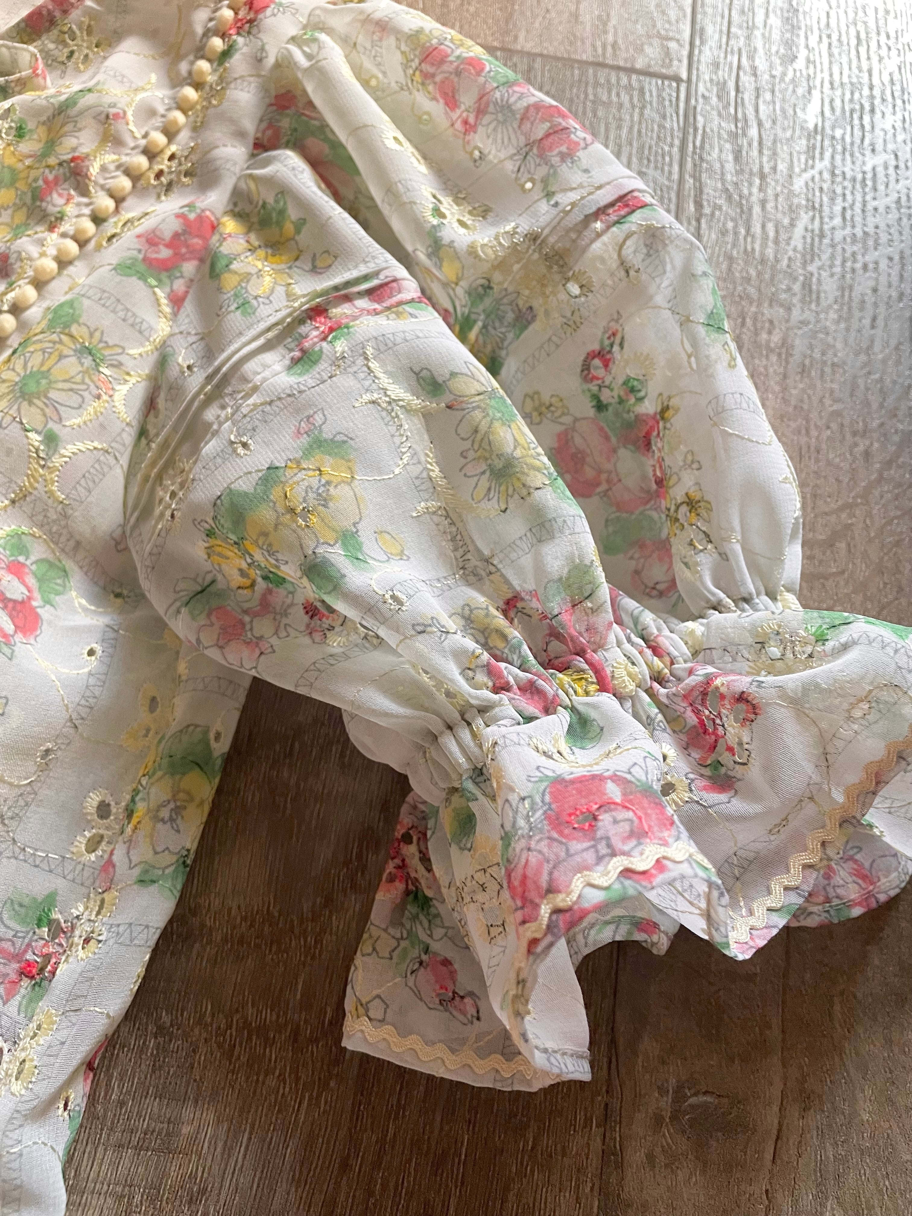 【貴族の休日ブラウス 】 パッチワークフラワー