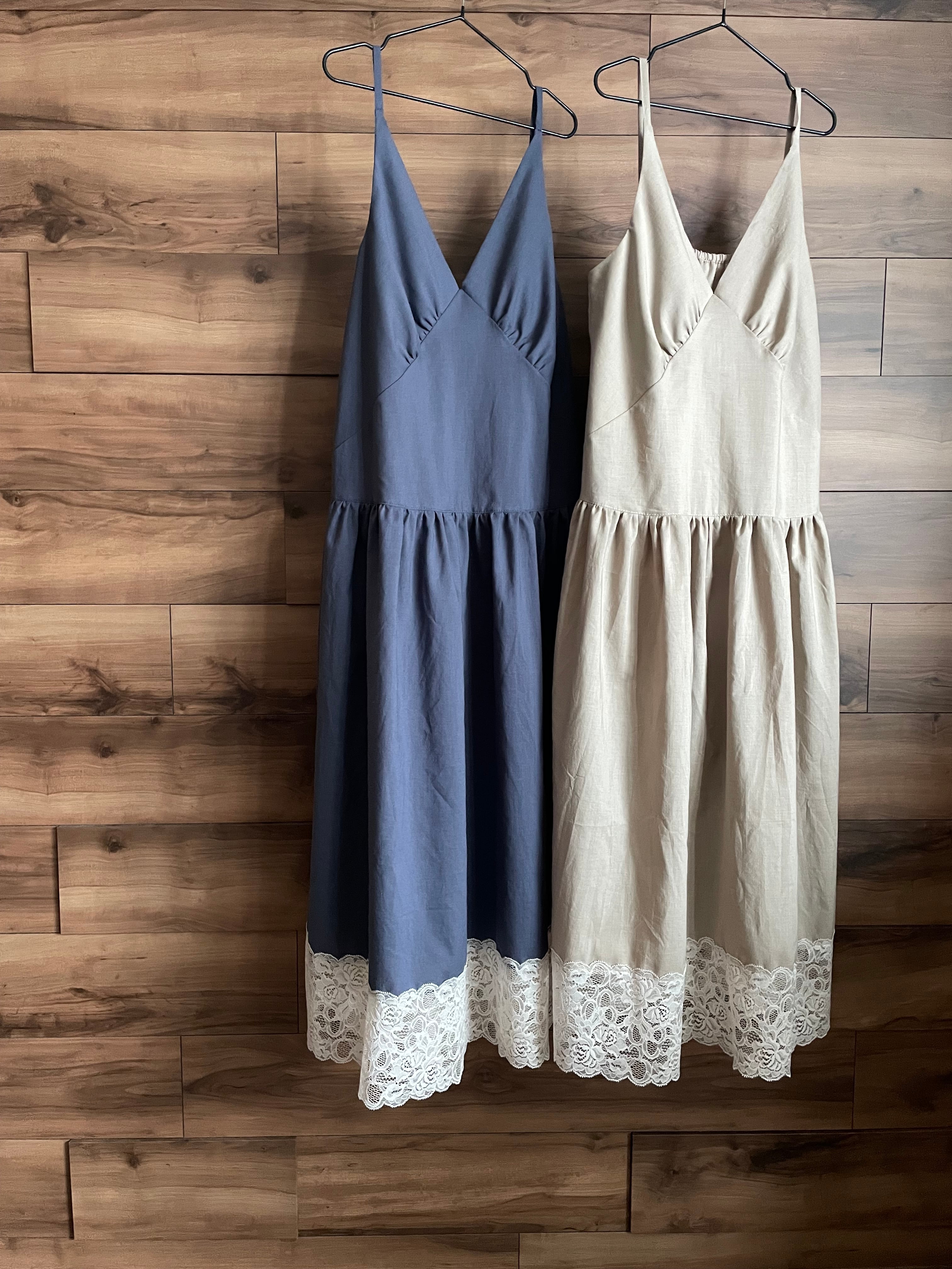このワンピースには、「ニュイ・ブランシュ」のサンドベージュを、オプションでお選びいただけます。